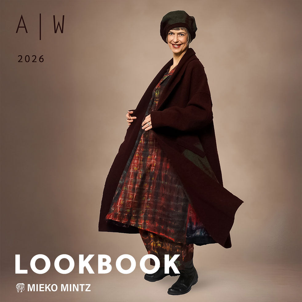 Mieko has also been involved with the creation of new original print designs. She is strongly attracted to the sense of color and pattern that developed in Japanese kimono culture. She is also fascinated by the simple hand-stitching (kantha) that has evolved over hundreds of years in India. She has found that these two traditions perfectly complement each other. Her quest to merge these fashion cultures in her clothing design has culminated in these new collections.