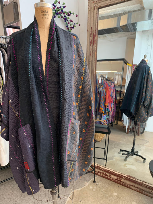 KIMONO COTTON KANTHA LONG DUSTER - kc2328-blk -