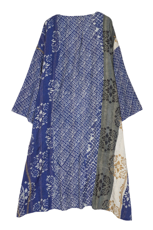 KIMONO COTTON KANTHA LONG DUSTER - kc2328-blu -