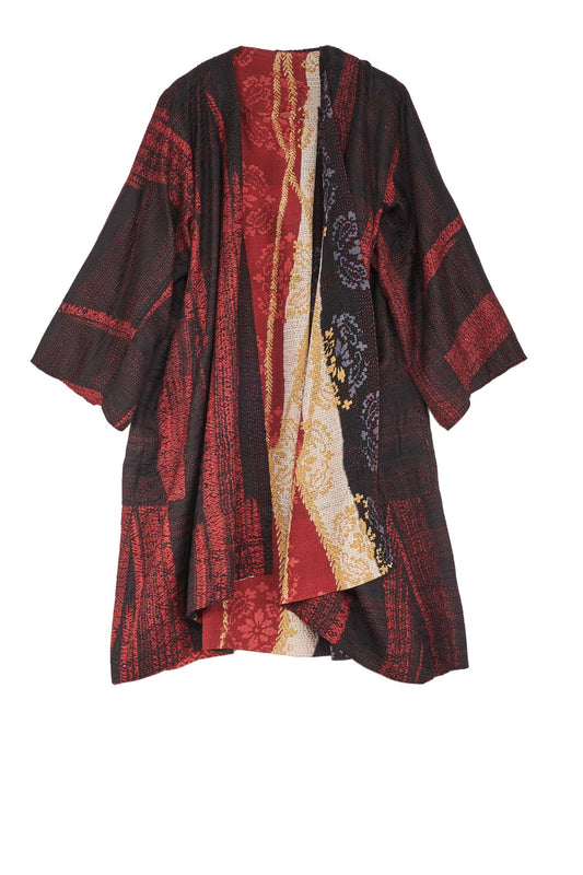 KIMONO PRINT KANTHA KIMONO DUSTER - kp2317-red -