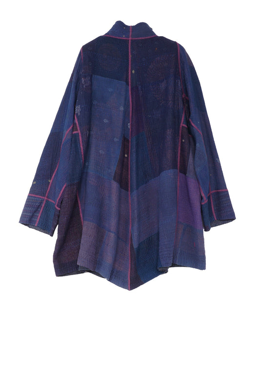 OMBRE PATCHED KANTHA FUNNEL COLLAR COAT - op4312-blu -