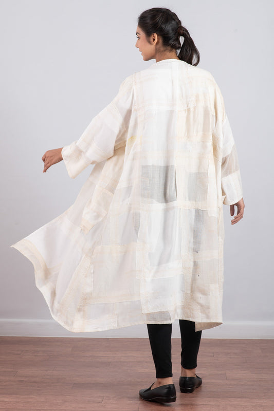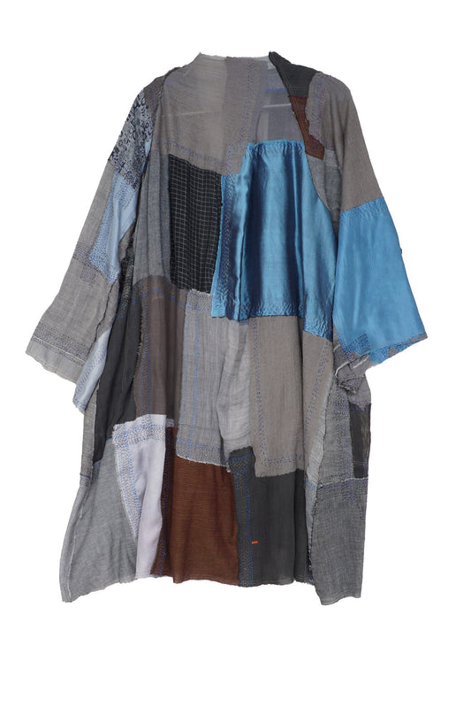 MOSAIC TILE PATCH KANTHA KIMONO DUSTER - mt1317-gry -