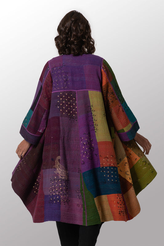 OMBRE PATCHED GOLD STAMP KANTHA WRAP FLARE COAT - og4330-mlt -