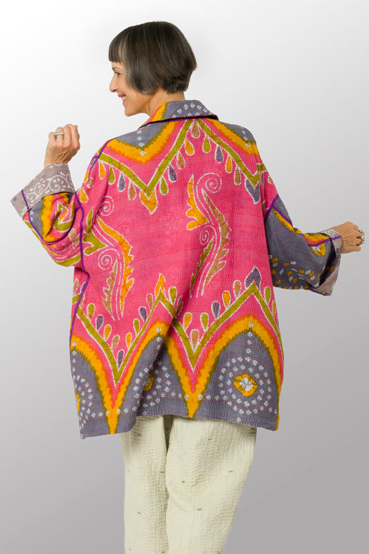 VINTAGE COTTON KANTHA OVERSIZED MINI COAT - cv4332-0043a -
