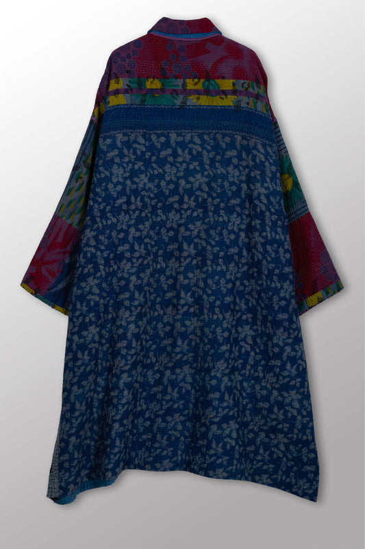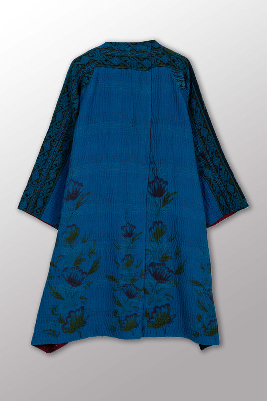 COTTON OVERDYE KANTHA WRAP FLARE COAT - ov4330-cblu003a -