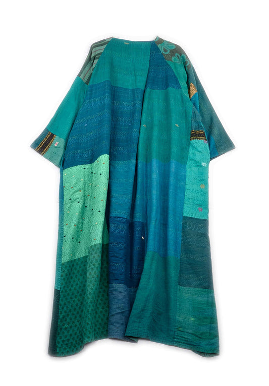 COTTON SILK SW PATCH KANTHA KIMONO MAXI - ws2318-tel -