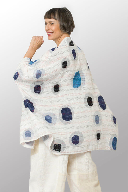 CUT OUT KANTHA DOUBLE COLLAR PONCHO - ck2323-wht -
