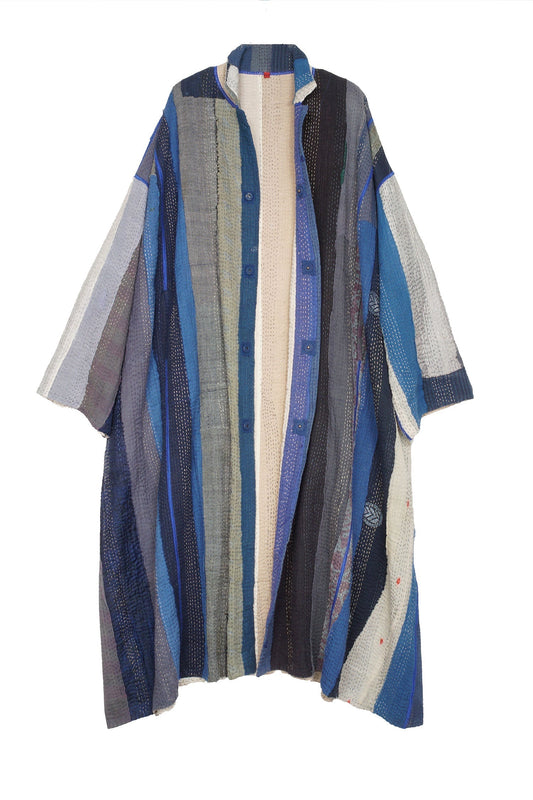 COTTON STRIPE PATCH KANTHA OVERSIZED COAT - cs4326-blu -