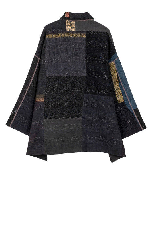 DENIM SUN-DYE KANTHA NEW RAGLAN SLEEVE COAT - ds3353-blk -