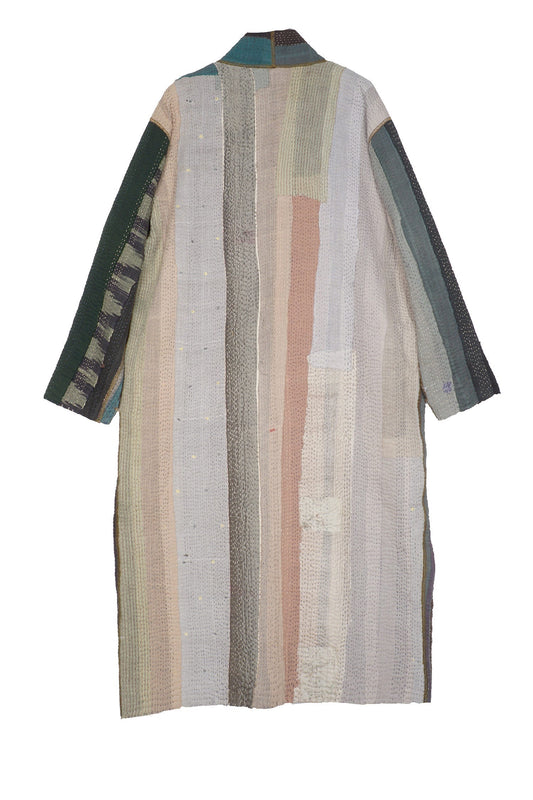 COTTON STRIPE PATCH KANTHA ROBE COAT - cs4329-grn -