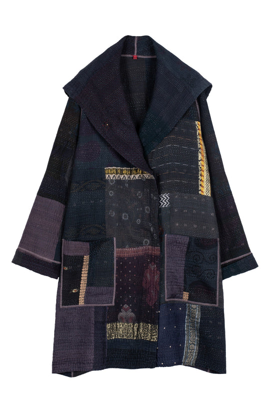 COTTON SILK SW PATCH KANTHA OVERSIZED COAT - ws4326-blk -