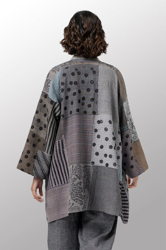 FRAYED PATCH KANTHA CIRCULAR JKT - fi2008-gry -