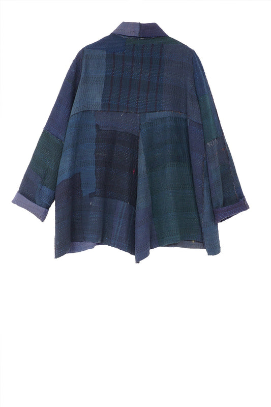 FRAYED PATCH KANTHA BACK FLARE JKT - fi4046-nvy -