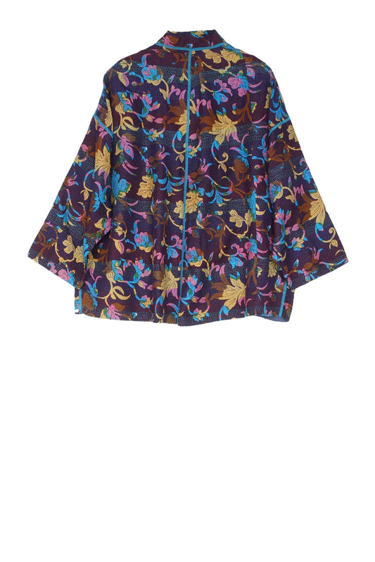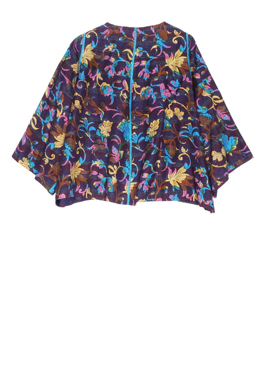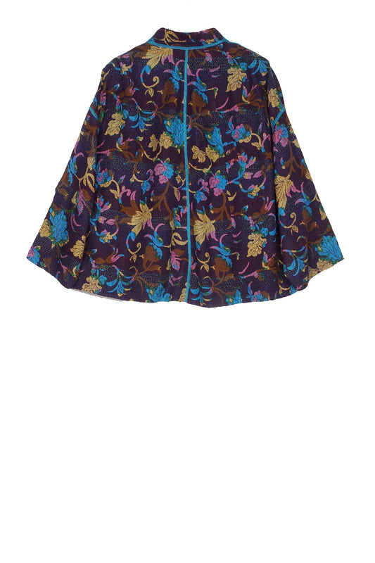 FLORAL SILK PRINT KANTHA BELL SHAPE JACKET - fs2048-nvy -