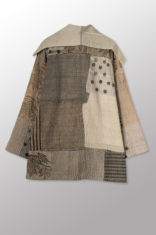 FRAYED PATCH MIX KANTHA A-LINE JKT - fm4003-ivy -