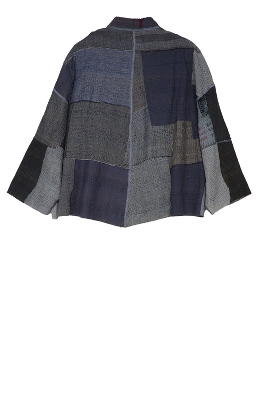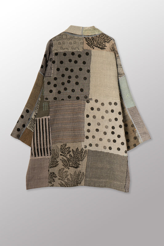 FRAYED PATCH KANTHA WITH STAMP HAORI JACKET - sp-fi4068-gry -