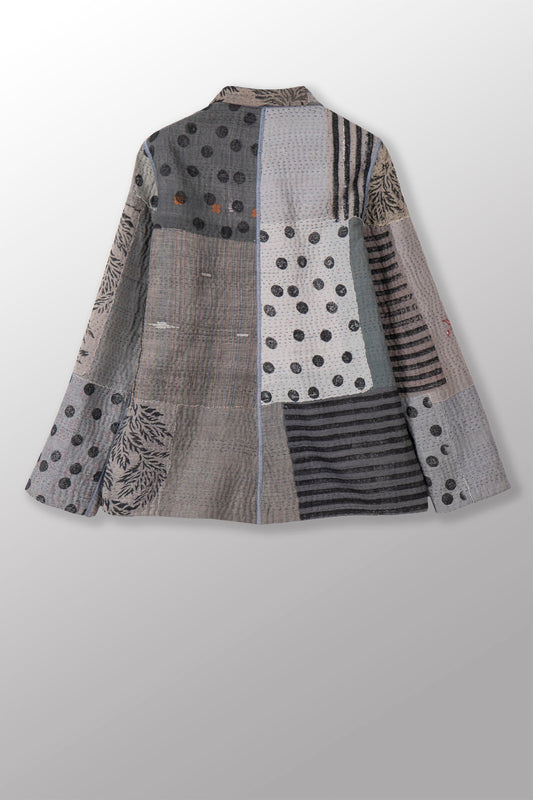 FRAYED PATCH KANTHA SIMPLE JKT - fi4022-gry -