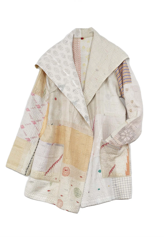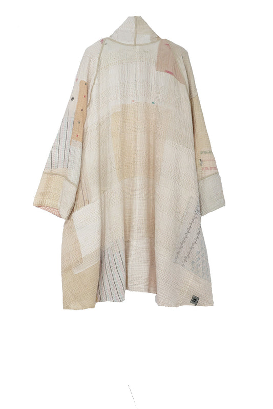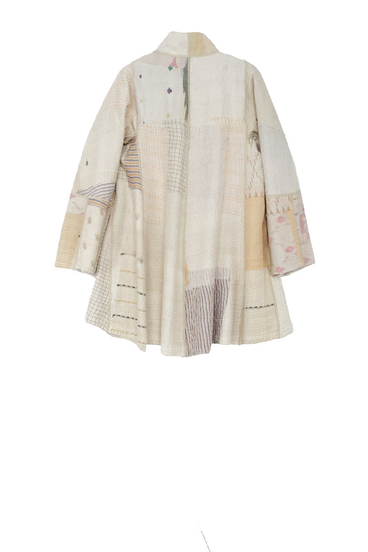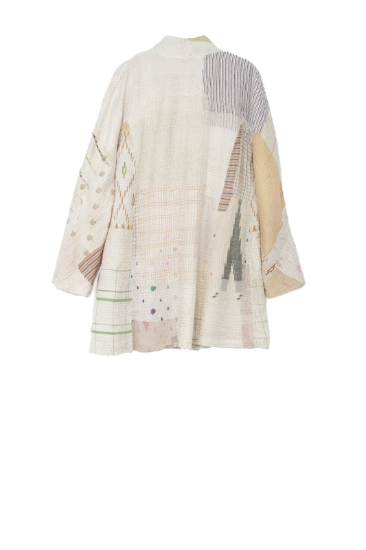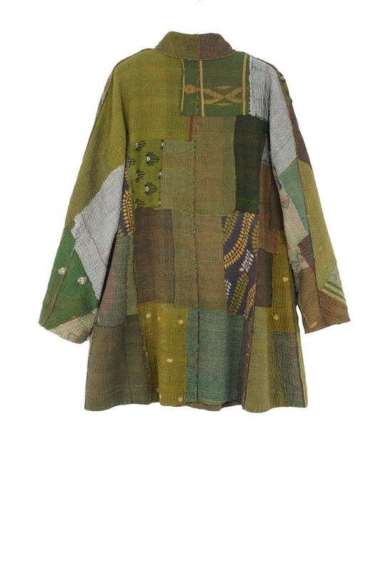 FRAYED PATCH MIX KANTHA KIMONO LONG JKT - fm4005-ivy -