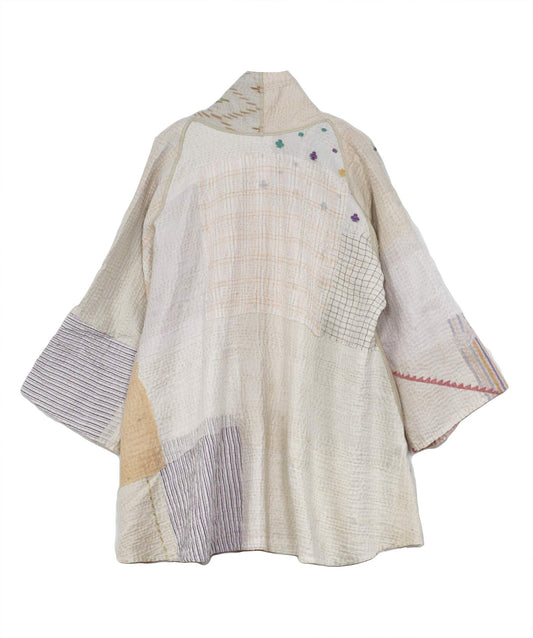 FRAYED PATCH MIX KANTHA KIMONO JKT - fm4004-ivy -