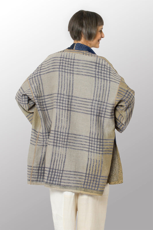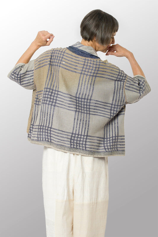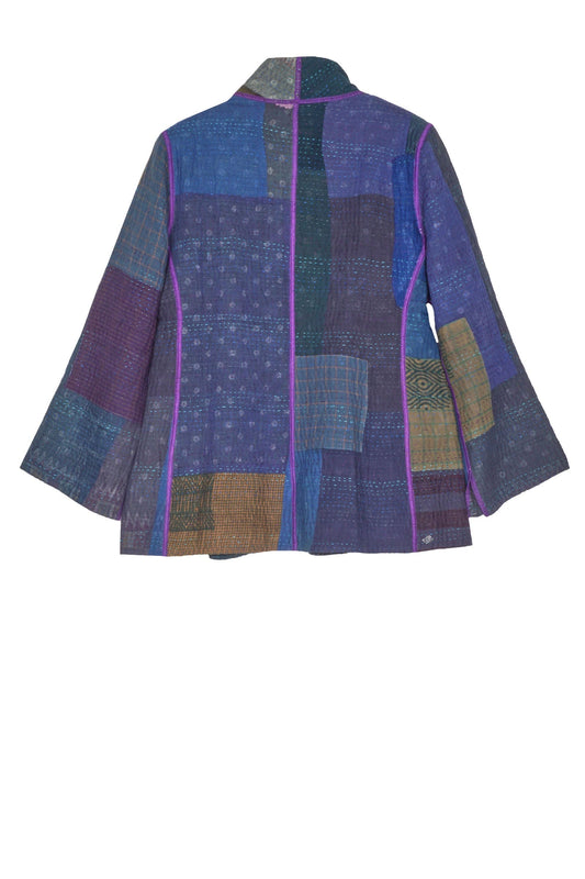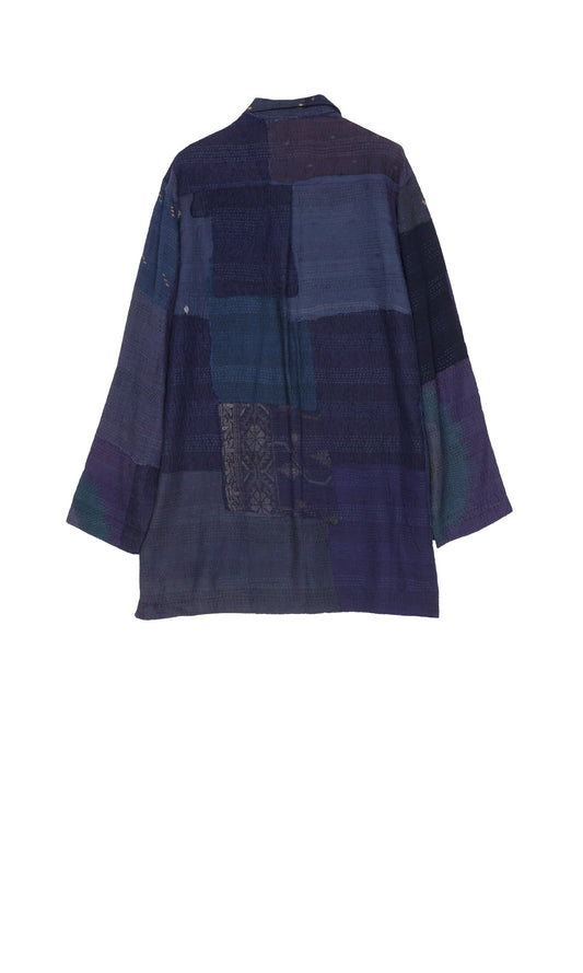 INDONESIAN PRINT VINTAGE INDIGO BACKING KANTHA HAORI JACKET - bi2068-blu -