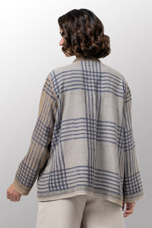 IKAT STRIPE KANTHA SHORT JACKET - is4007-drd -