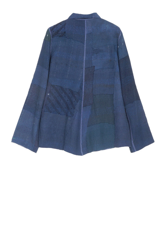 INDIGO PATCHED KANTHA SHORT JKT - ip4007-nvy -