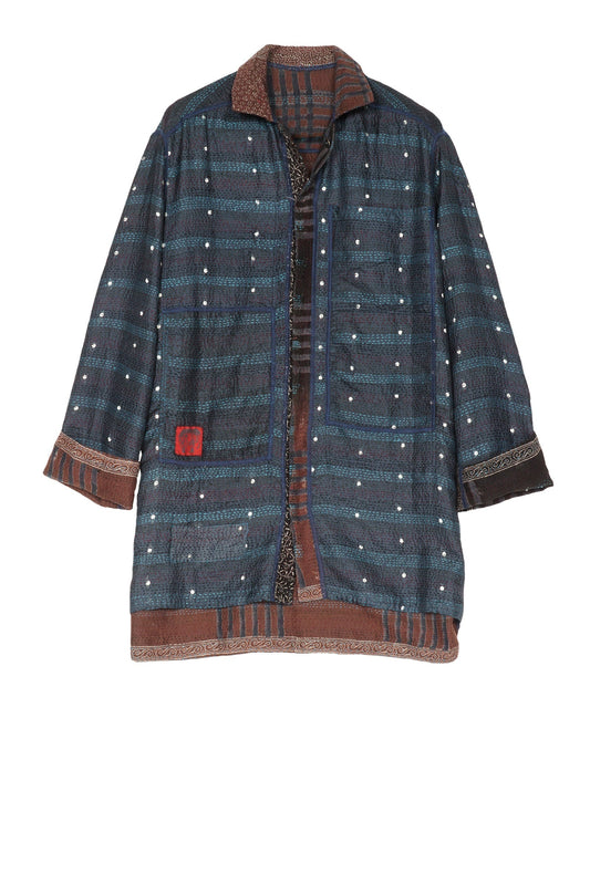 IKAT STRIPE KANTHA WORKERS JACKET - is4085-drd -