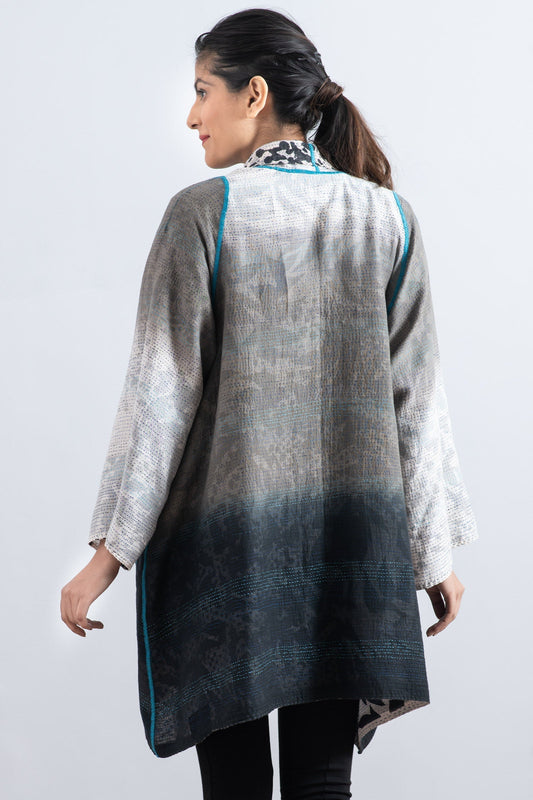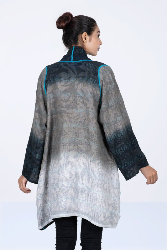 MONOTONE TWILIGHT PRINT KANTHA A-LINE JKT - tp2003-blu -