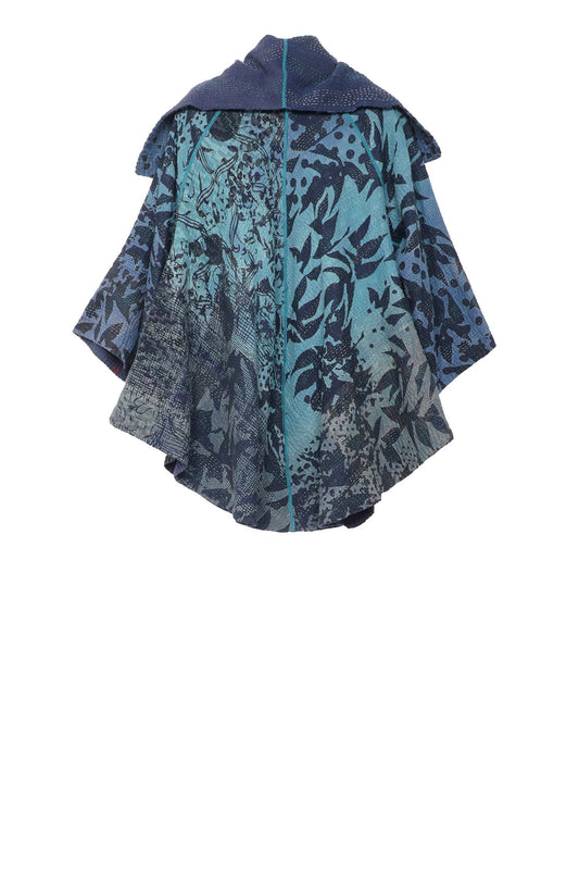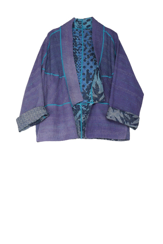 MONOTONE TWILIGHT PRINT KANTHA DOLMAN SHORT JKT - tp4015-blu -