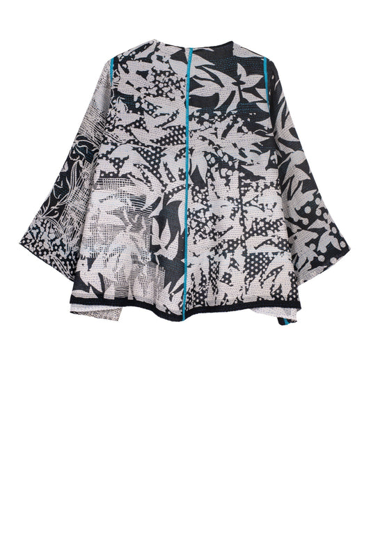 MONOTONE TWILIGHT PRINT KANTHA BELL SHAPE JKT - tp2048-blk -