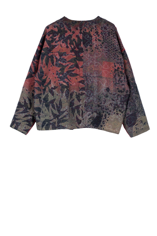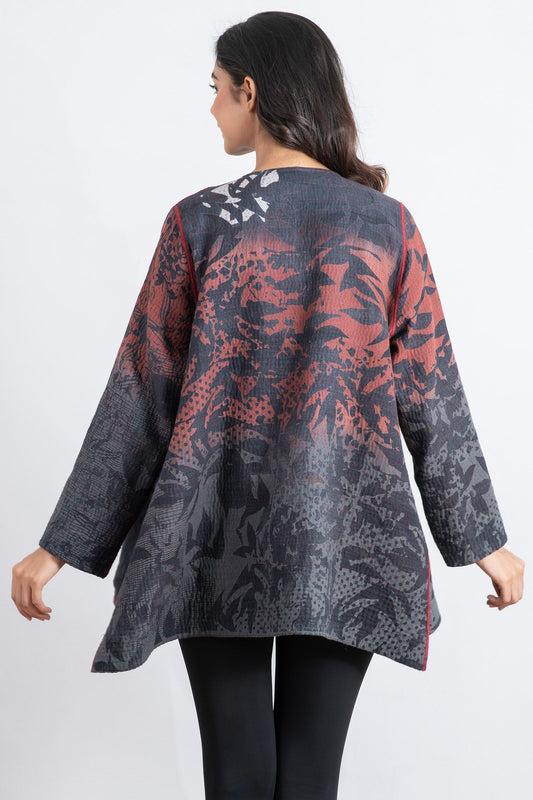 MONOTONE TWILIGHT PRINT KANTHA A-LINE JKT - tp4003-red -