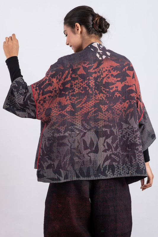 MONOTONE TWILIGHT PRINT KANTHA WING COLLAR JACKET - tp2013-red -