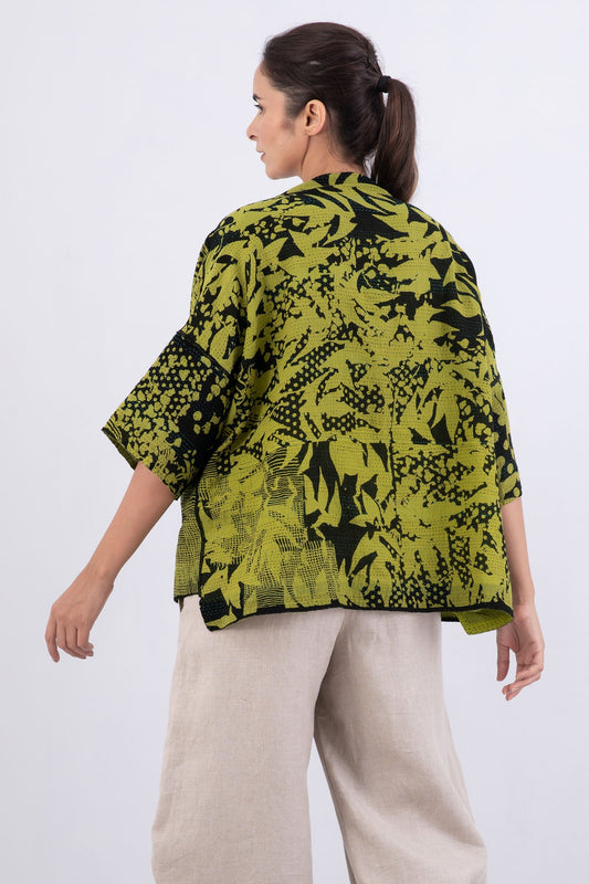 MOSAIC FRAY PATCH KANTHA A-LINE JACKET - zb2003-ivy -