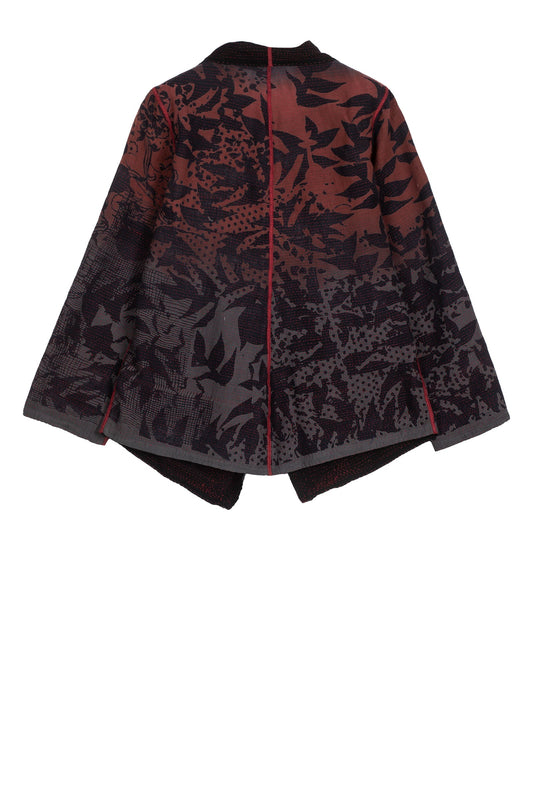 MONOTONE TWILIGHT PRINT KANTHA STRAIGHT NECK JKT - tp4058-red -