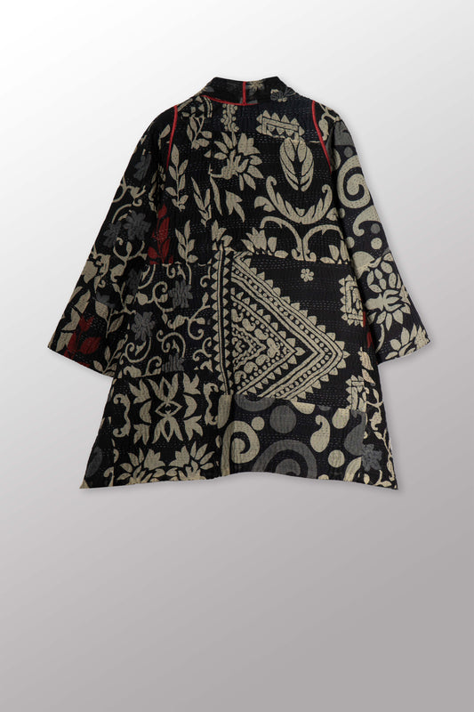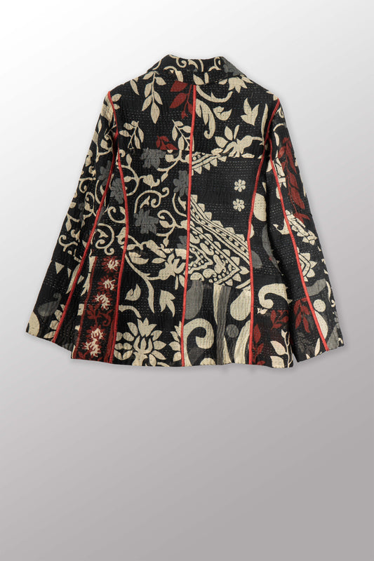 BLACK AND WHITE PRINT PATCH KANTHA A-LINE JACKET - pn4003-red -