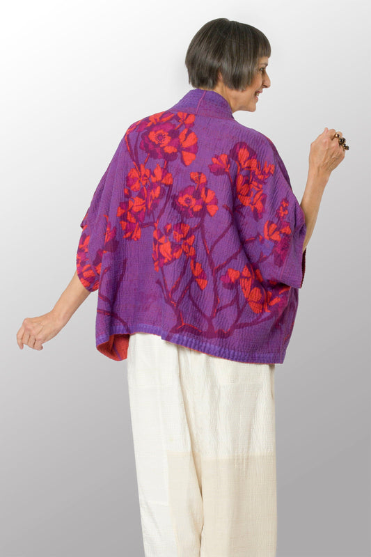 BLOOMING FLOWERS KANTHA KIMONO LONG JACKET - bf4005-prp -