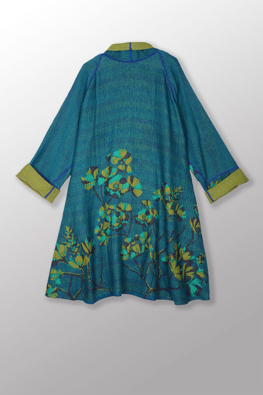 BLOOMING FLOWERS KANTHA KIMONO LONG JACKET - bf4005-blu -