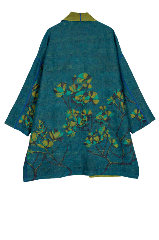 BLOOMING FLOWERS KANTHA HAORI JACKET - bf4068-blu -