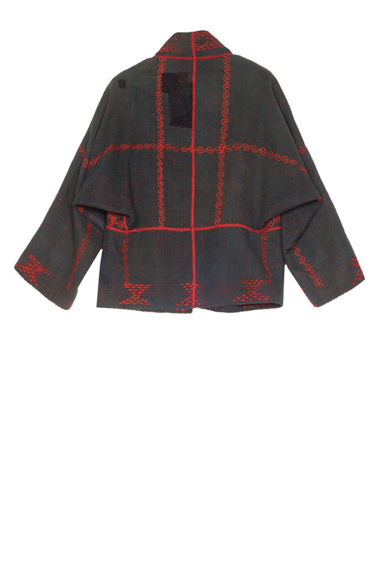 STRIPE AND BENDS KANTHA BASIC JACKET - sb4052-red -