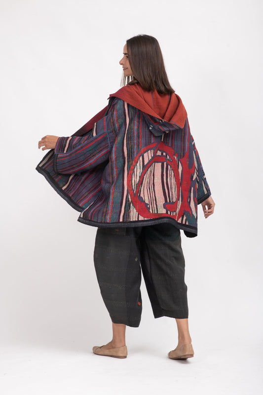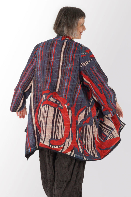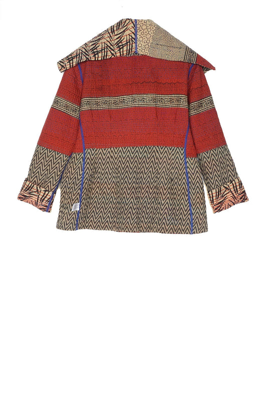 STRIPE AND BENDS KANTHA A-LINE JACKET - sb4003-red -