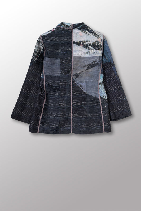 TONAL TILE PATCH KANTHA A-LINE JKT - tt2003-blu -