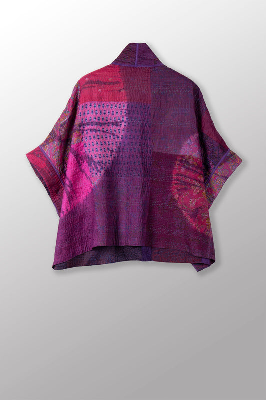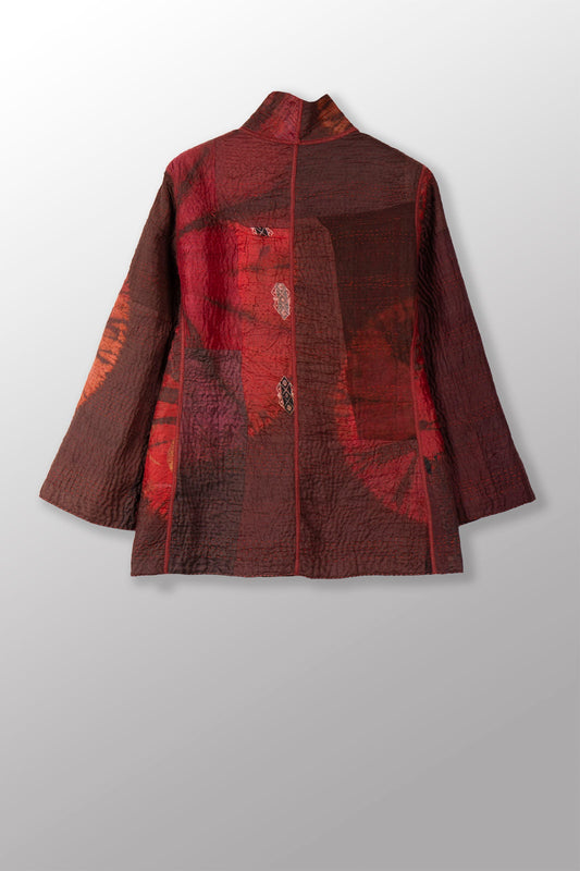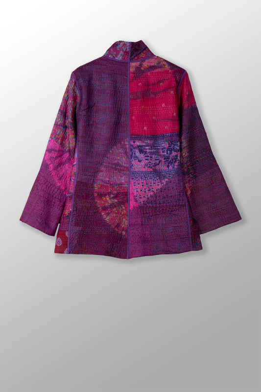TIE DYE CIRCLE SHIBORI KANTHA A-LINE JACKET - td4003-prp -