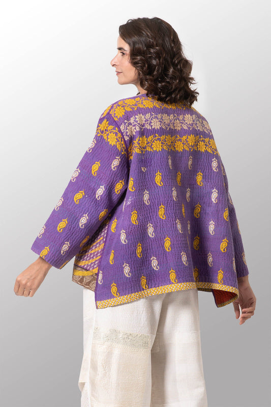 VINTAGE COTTON KANTHA A-LINE SHORT JKT - cv4019-0017a -