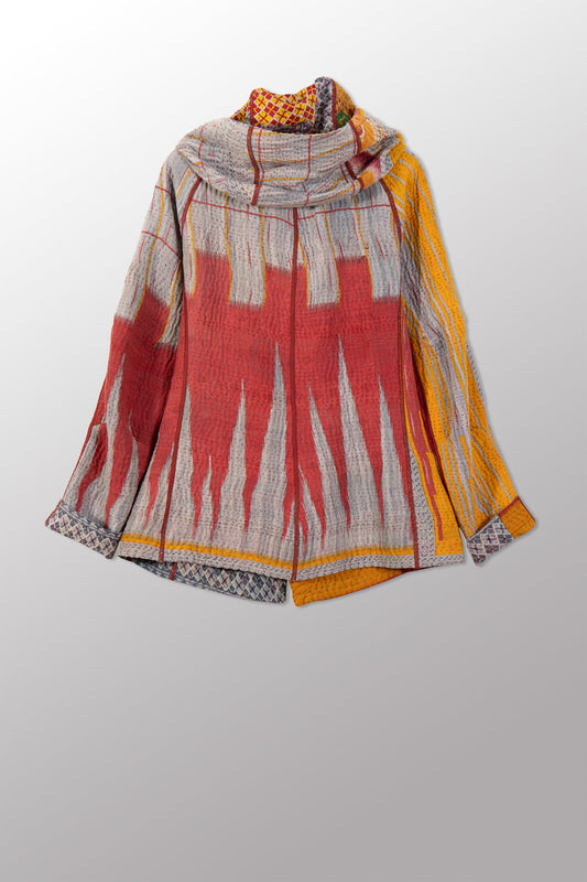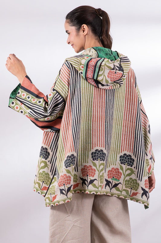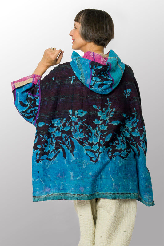 VINTAGE COTTON KANTHA HOODIE PONCHO - cv4064-0028a -