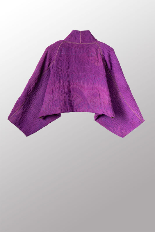 VINTAGE SILK GEORGETTE COTTON KANTHA PUFF SLV. SHRUG - gc2062-0002a -