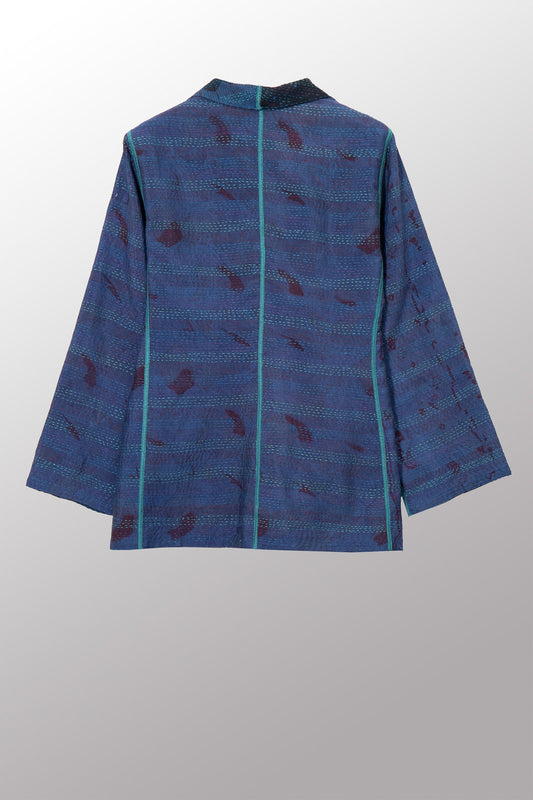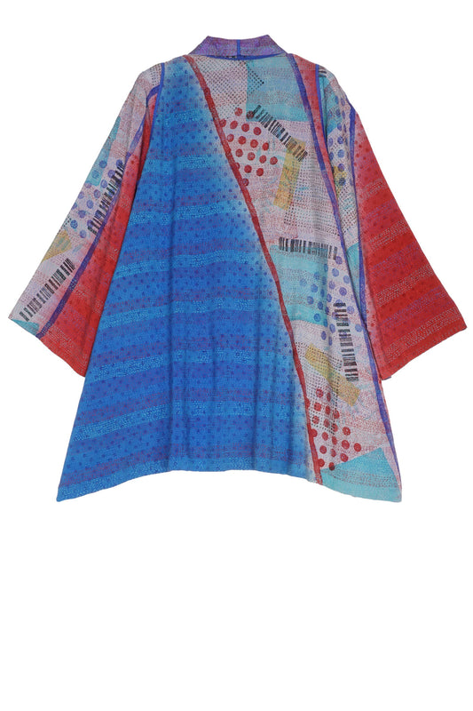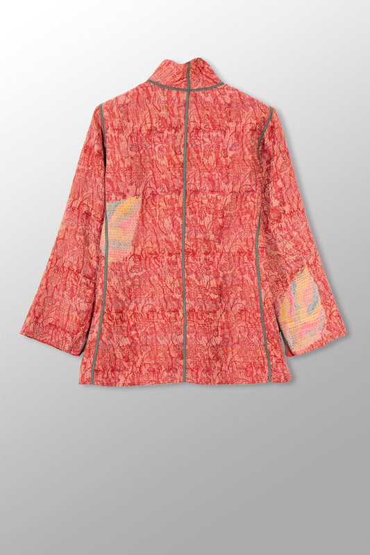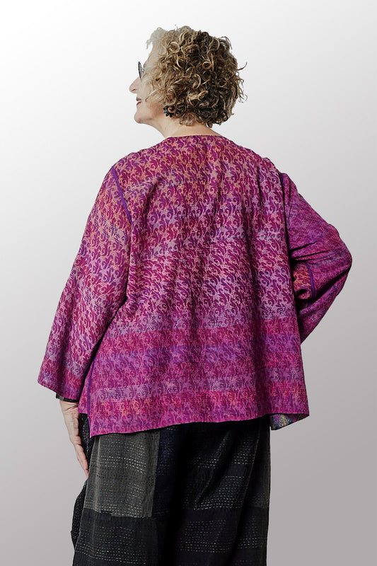 VINTAGE SILK GEORGETTE KANTHA A-LINE JKT - sg2003-0008a -
