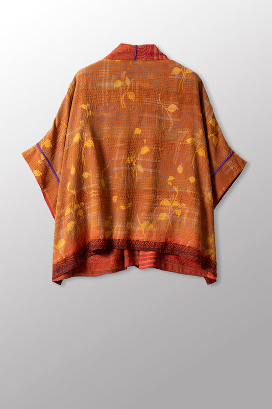 VINTAGE SILK GEORGETTE KANTHA A-LINE SHORT JKT - sg2019-0001a -