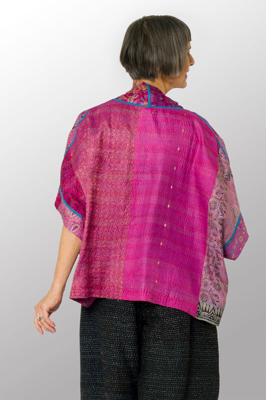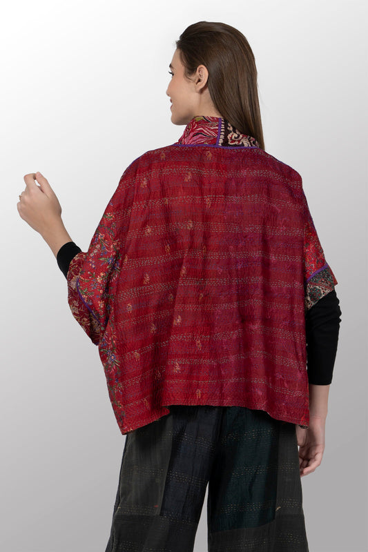 VINTAGE SILK KANTHA MINI PONCHO - sv2060-0009a -