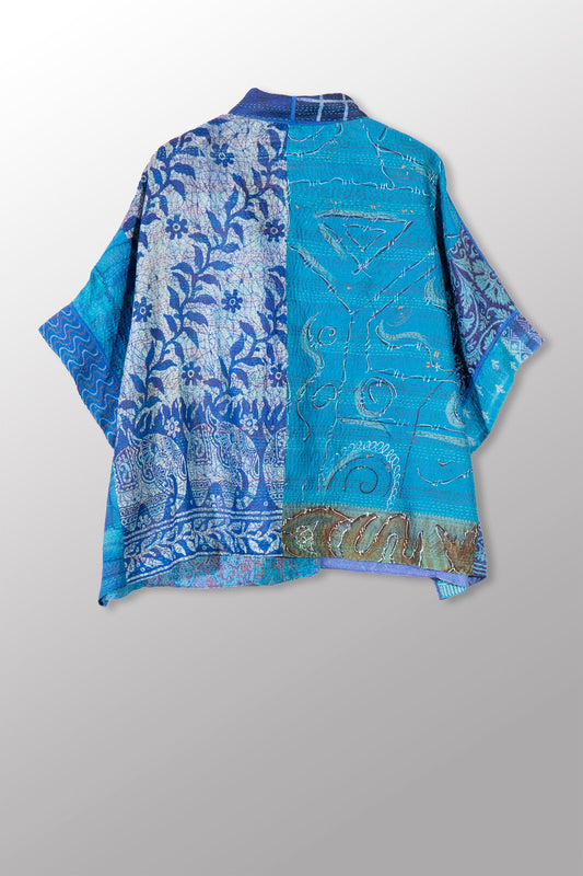 VINTAGE SILK KANTHA MINI PONCHO - sv2060-0008a -