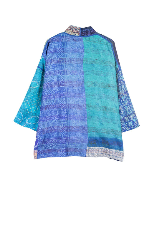 VINTAGE SILK PATCH KANTHA MINI KIMONO JKT - vp2055-blu -